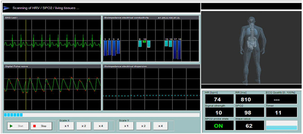 Zes elektroden en een pulse oximeter zorgen voor de meting, die zeer veelomvattend is. Ter vergelijking: er zijn diverse onderzoeken voor nodig bij verschillende specialisten om tot deze kennis te komen. Dit zijn kostbare onderzoeken, die ook nog eens veel tijd in beslag nemen. En vaak is men maanden verder voor de uitslag bekend is. Wat ook een zeer belangrijk punt is dat je zelf in staat bent preventief aan je gezondheid te werken met de gegevens die uit de meting komen. De weg die je lichaam ingeslagen is richting ziekte, kun je ombuigen richting gezondheid dmv een persoonlijk advies tav voeding, suppletie en lichaamsbeweging. Tekorten of overschotten kunnen in je lichaam opgespoord worden voordat ze een ziekte kunnen veroorzaken.